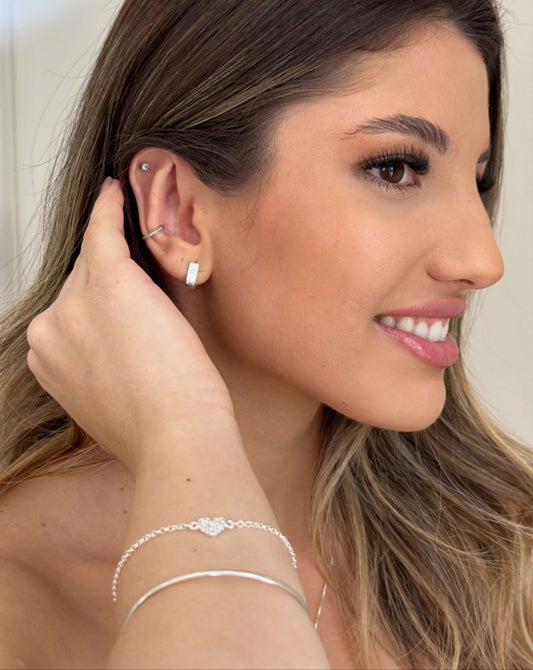 Brinco de Argola Quadrado 3 Fileiras Cravejado Prata 925